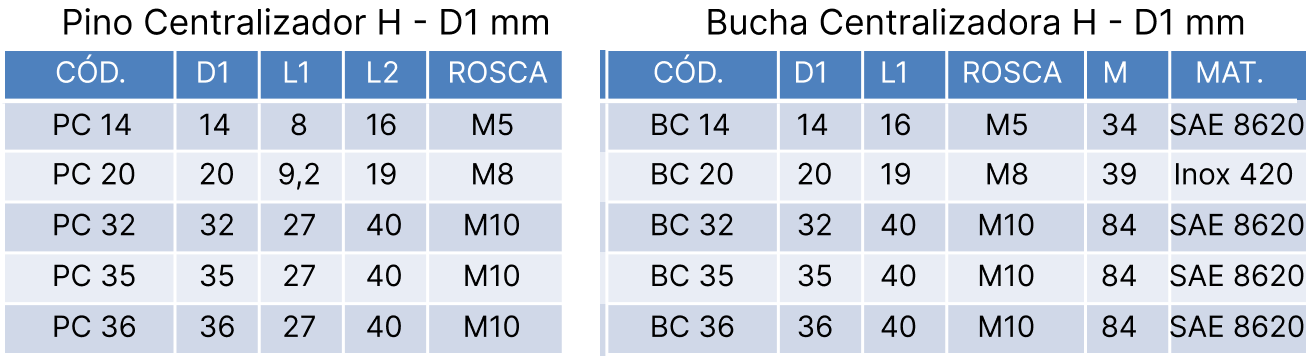 Conjunto Centralizador H-D1 mm