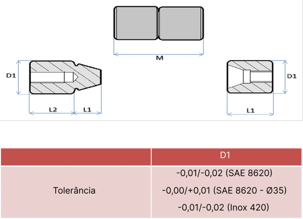 Material: SAE 8620 Tratamento: Cem. e Temp. Dureza: 58-62 HRC